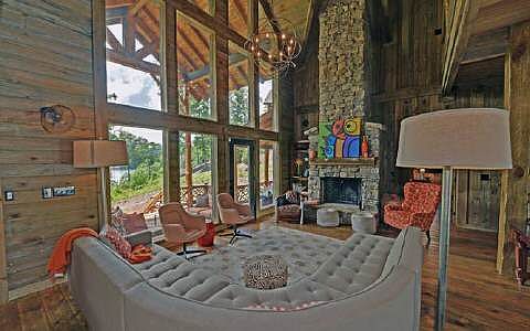 Stunning Keith Sumner custom home on Lake Blue Ridge. Deeded boat slip in shared community dock. Elaborate Rock Work inside and out. Refined rustic w/barnwood style ceilings & trimwork, Wide plank distressed hardwood floors and Master bedroom with Rock Waterfall Shwr. Chef kitchen w/industrial 6-top gas burner w/double ovens. 2-story great rm w/massive rock fireplace. French doors to outdoor living area w/ fireplace, and steps down to lake. Full finished basement w/ massive rock fireplace, living area, wet bar w/wine cooler, room for game or pool table. Bunk Room with beds stacked 3 High sleeps 6! Lots of privacy on 1.5 ac. lot. High end light fixtures. Speaker system. Back up generator for power outages. Furnishings negotiable.