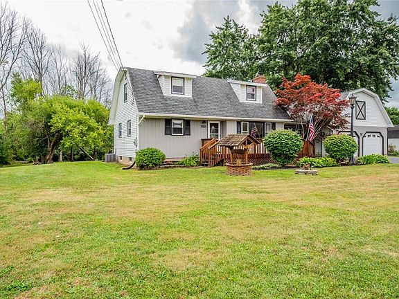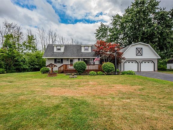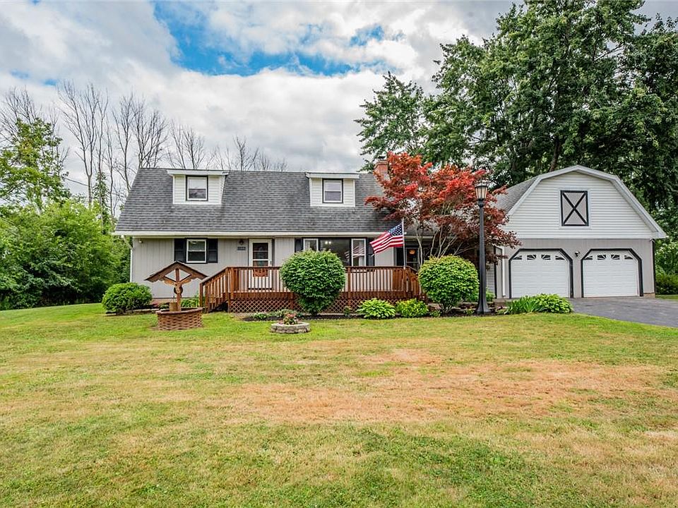 This is the one-acre, wooded country setting you've been waiting for! Spacious & clean Cape Cod home in the Hilton School District w/awesome 2 car garage w/stair access to 2nd story workshop/storage through garage! Park your RV/camper alongside the garage. The property is also just 100 yards from 27-acre Parma Center Park. Double wide driveway w/convenient turnaround. The open & inviting front porch welcomes you inside to find shiny hrdwd floors & a living room divided from the sunken family room by dual sided woodburning fireplace. A modern & updated eat-in kitchen w/new sliding glass door out to deck. A 1st floor bedroom is currently setup for laundry that can easily be relocated to existing basement hookups and converted back into the 4th bedroom if desired. Upstairs big bedrooms w/huge closets & crawl space storage. Bonus space in the unheated Florida room that overlooks the huge, wooded backyard. It has newer windows & ceiling fan. Full basement w/separate area & many possible uses: fitness/workout, home office, man cave, rec rm for kids? High Efficiency HVAC 2005, Roof 2007, Hot water tank 2010. Open House Sunday 1-230 or view by appointment. Offers due Monday 8/15 at 10am