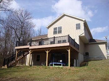 Listing agent: Linda A. Lowe, Call 814-231-8200 for information. Whether it’s relaxing, entertaining or just everyday living, the design of this custom built 2-story helps you maximize each. Offering a delightfully different floor plan that flows nicely! You will notice the attention to every detail thru-out from the vaulted ceilings to the captivating dining room that opens to the custom eat-in kitchen with beautiful custom Glick cabinetry, island/breakfast bar with cook-top, built-in wall oven & microwave, pantry & French doors to the new custom built TimberTech deck. The beautiful hardwood/open staircase leads you to the relaxing master suite with walk-in closet, full bath with corner jetted tub, dual vanity & separate shower. Additional highlights include a super cozy sunken family room , ½ bath & convenient laundry room, wood trim, transom windows, heat pump/central air, walk-out lower level (plumbed for full bath) to patio. Perfectly positioned on 2.34 wooded acres. Easy commute to Bellefonte, State College & Lock Haven.