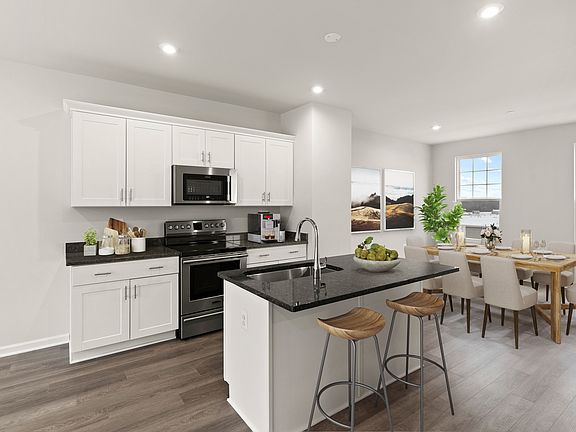 Discover your dream home in the prestigious Presidents Pointe neighborhood with the Hastings townhouse. This stunning three-level home offers an impressive 1,557 square feet of living space, three bedrooms, and two full and two half bathrooms. The fully appointed kitchen and private deck on the main level are perfect for entertaining guests. Relax in the cozy family room or host movie nights in the inviting recreation room on the lower level. On the upper level, you'll find a primary bedroom and bathroom suite, along with two additional bedrooms and a hall bathroom. With a two-car garage included, this is a truly convenient and amazing opportunity you don't want to miss. Welcome to the perfect home for you and your family, where comfort, convenience, and style come together in a beautiful package. The photos shown are from a similar home. Contact the Neighborhood Sales Manager today to schedule a tour or come visit us today for a tour of the model home! Some of the selected options in this home include : End unit, lower level recreation room with half bath, deck, powder room, pantry, linen closet