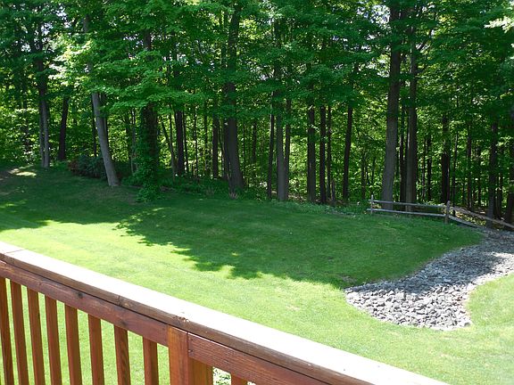 Stellar of a property; Best View overlooks Irondequoit Bay; 3 bdrms, 2.5 baths, 2 car fin. attached garage; Gorgeous Vaulted Great room with hardwood floors, ceiling fans, skylights, gas fireplace; dinette area sliders to deck; eat in kitchen recessed lights with granite countertops, custom cabinets, new stone backsplash; all new S.S. appliances included; tile flooring; Loft overlooks great room; master has walk in closet; master bath, granite countertops; 2nd brm hardwood flrs, 3rd bdrm/in-law in basement w/walk out and full bath not included in sq. ftg. (550+-), patio; stunning views; HOA $250 mth; Great Unit; clean, no pets, no smoking no children; trails to water; new a/c; 2nd floor laundry washer & dryer included; move in condition