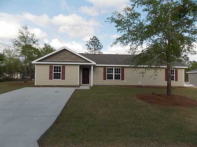 BEAUTIFUL NEW HOME AT AN AMAZING PRICE!! This is a wonderful opportunity to own a newly built home at the best price ever. Vinyl siding and trim make exterior maintenance on this home almost nothing. The shake shingle trim over window in the front adds a sense of quality and class. Cement drive and parking pad are another added convenience you will notice before you even enter the home. Upon entering the extra attention to detail is even more apparent. Cathedral ceiling in the living area and dining/kitchen area adds a bigger more expensive feel to the home. There is chair-rail in the dining area along with upgraded light fixtures. The bronze colored light fixtures carries over to the ceiling fan in the living area. Dark colored cabinetry that has been installed in a true 3-D manner with crown molding really adds to the luxurious feel of the kitchen. There is a huge pantry for added storage and organization. The 2 additional bedrooms and hall bath are all good sized and very nice. The laundry room has more than enough room for a folding table or whatever meets your needs. On the other end of the home is the master bedroom and bath. The rooms are large and the closet is HUGE. It measures 11 ft. x 6.6 ft. There should be enough room for all your clothes! Bronze colored fixture and fan in the master bedroom and bathroom continue the theme. French doors open from the dining area onto a cement patio. Take a look at this home and let's make it yours!!