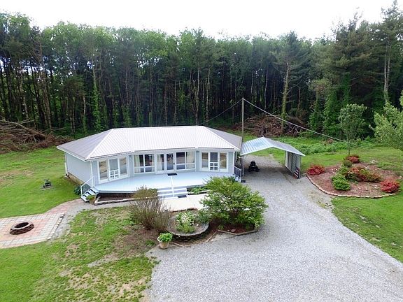 Beach inspired single level home in the mountains of Virginia. This maintenance-free 2 bedroom, 2.5 bath open plan home has plenty of square feet for comfortable living but also has a couple of acres for space to play. In a very private setting, this beautiful home is at the end of the street in Rural Retreat and has mountain views on a partially wooded lot. Both bedrooms and closets are spacious and the Master Suite includes the laundry plus there's additional storage throughout the house. The great room and kitchen are combined to provide plenty of space for gatherings and amenities include gas log fireplace and hardwood flooring all under the cathedral ceiling. An outbuilding and carport also provide space for tools, toys and treasures. Sustain your own supply by growing food onsite and with the additional range/oven, you can operate your canning operation just off the kitchen. This property is private but is being made public for the first time, don't miss out!