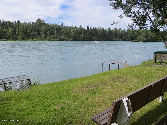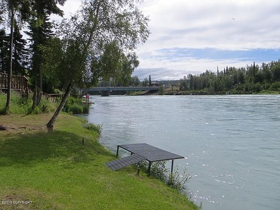 THE HEART OF SOLDOTNA!! Log home on FANTASTIC RIVER LOT LOCATED ACROSS FROM CENTENNIAL PARK. Nice place to come to for the summer and fish, easy access to shopping and restaurants. Cozy fireplace in living room, 3 bedrooms and 2 baths. Owner will finance with 20%, 6.50 interest for 20 years with 3 year call.Furniture to stay. Wonderful Recreational stop! NICE, NICE, NICE, River Front.!!!