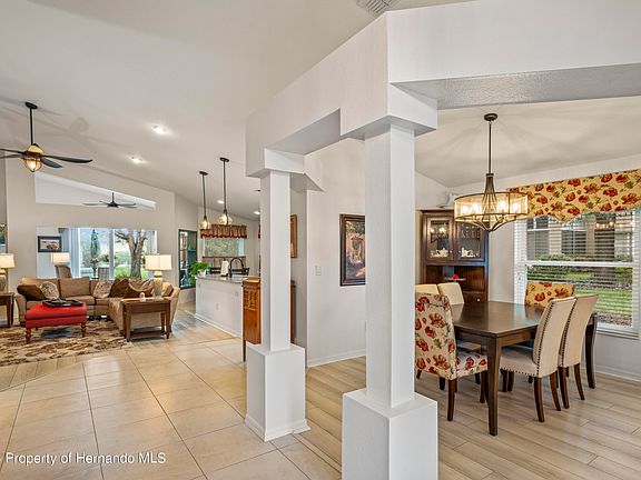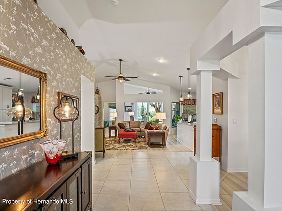 Active Under Contract - Accepting Back Up Offers. QUALITY! Beautiful, newly renovated home nestled in the beautiful, gated 55 plus - Wellington at Seven Hills. This open floorplan was made to entertain your guests with ease. The newly designed Kitchen with granite counter, 42' custom easy close cabinets w/pullouts, (custom pantry, spice, pan, & waste), under cabinet, LED lighting, & GE appliances. 'Uttermost' lighting throughout, Quiet 'TropsAir' ceiling fans (w/remotes), & recessed lighting. 2023 dual pane, tilt-out, hurricane-rated windows. Solar tubes in Laundry & kitchen. The sunroom is tiled, ac/heat with slider access to the patio. Professionally painted interior w/some accent wall coverings. The master bath is a delight with a custom cabinet snuggled between framed mirrors, an easy close walk-in shower, a neutral granite counter, jetted walk-in tub & comfort height toilet. Master closet and bedroom #2 storage designed by 'Create More Space'. Guest bath with tasteful quartz counter, comfort height toilet, and designer shower curtain. Window treatments by 'Smart Interior Home Furnishings' Luxury plank, vinyl flooring, and tile with 'Accent Crack Suppressor System.' Laundry GE W/D with broom closet. Garage pulldown stairs, water softener, 220 car charger. Carrier whole house air filtration system. This is a maintained home with lawn care, roof replacement scheduled for 2025, and exterior paint every 10 years. (Community replaces roof once at 20 years.) Enjoy the community Bar n' Grill, heated pool/spa, billiards, tennis, pickleball, horseshoes, library, fitness, and more. Join dozens of clubs, classes, and social events (both formal and whimsical). Great location with easy access to the Gulf of Mexico, Tampa, and Orlando. 45 minutes from the Tampa International Airport. Also, enjoy dozens of day trip adventures at your fingertips. You too will soon be saying 'I love the place I live' HOME IS FURNISHED - MINUS A FEW PERSONAL & SENTIMENTAL ITEMS