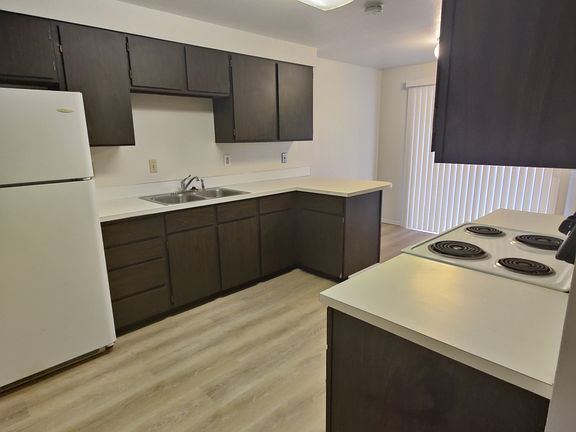 New Flooring and paint! 2 bed / 1 bath apartment! Open kitchen plan with dining room and breakfast bar. LVP throughout house. Private patio. W/S/T paid for by owner. Central heat and air. Comes with single car garage. Detached storage unit available for additional cost. Shared laundry room on property. To apply, visit our website at https elmorepm.
