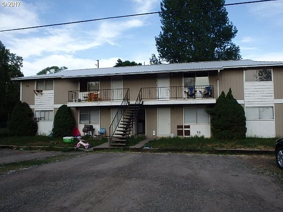 This 4 plex is at the end of 6th St. on a gravel road. Several parking spots in the front. Large back yard with 4 storage areas for tenants. Stairs only to upper level. Community laundry area. Each unit has 2 bedrooms and 1 bath, as units are updated the carpets have been removed and replaced with vinyl flooring. Metal roof,