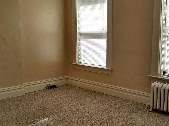* Spacious apartment for rent on the 2nd floor of a secured building in a quiet residential neighborhood * Kitchen equipped with dishwasher, stove, and refrigerator, opens to a bright dining room with bay window * Ceramic tile in both bathrooms * Wall-to-wall carpet in bedrooms and living room * Radiator/hot water heat * Access to shared yard * Ample street parking * Tenant responsible for electric and natural gas. * Landlord responsible for trash pickup, water/sewer costs, yard maintenance, and snow removal. * No smoking policy in building * Up to two cats considered for an additional $25 / month pet fee, plus refundable pet deposit of $200 for 1 cat, $400 for 2 cats * Applications through Zillow