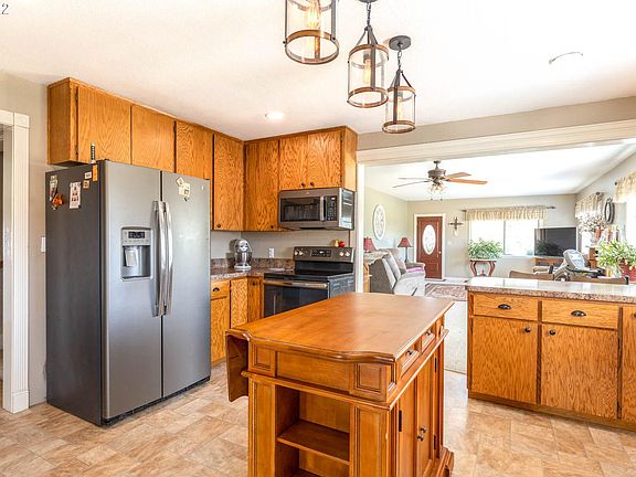 This updated and spacious 4 bedroom home is situated on 1.55 acres in the heart of Sutherlin! The owner's suite is on the main level. The upper level features 3 beds & 1 bath. Recent updates include new light fixtures in the kitchen & dining room, new carpet, paved driveway and new vanity in utility room. French doors off the dining room lead to an expansive bonus room. Relax on the covered deck overlooking the enormous yard. Ample parking space. M-1 zoning allows for multiple uses!