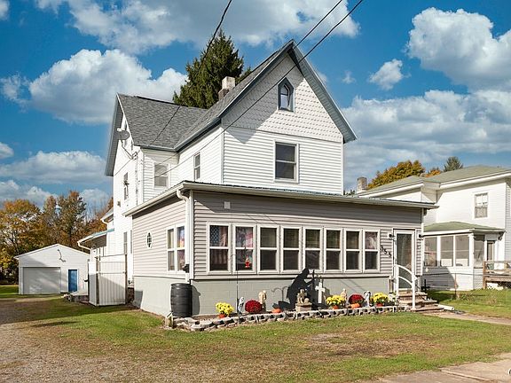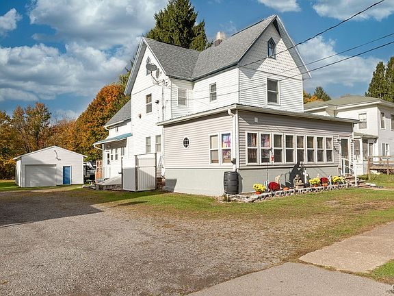 Great village home! 2 family home being used as a single family. Whichever you prefer! Home has been so loved by current owner. 1st floor boasts nice mudroom entry, good size bedrooms, dining room w/hardwoods, 1st floor laundry w/great walk in storage/pantry, beautifully renovated kitchen w/Cambria Quartz countertops, brand-new built in microwave, lovely cupboards & easy to maintain flooring. Plenty of counter & cabinet space! Primary bedroom w/full primary bath, as well as a completely remodeled 2nd full bathroom on this level! Upstairs has 2 very large bedrooms, a large living room, kitchen and dining area, along with a newly remodeled full bath, large storage room, and new heating unit. Front enclosed porch with sitting room area and hot tub that stays! Great space for a private retreat! Beautiful deck out back overlooking your large backyard and very nice 23x30ft detached garage (fits 2 cars). Furnace 3yrs old, hot water heater 5 years old, updated painting, flooring, some lighting. Great basement! Driveway is shared but very large! This whole home has been very well maintained! Taxes shown without exemptions. If you are looking for a large village home...this may be the one!