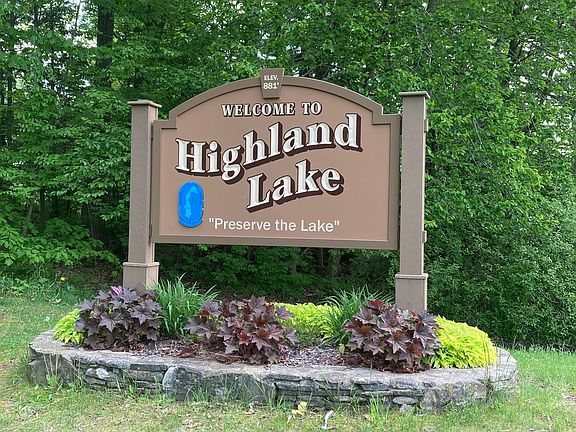 A truly rare opportunity for those seeking peace and tranquility. Lush grounds and perennial beds surround this unique home located at Highland Lake. "Ranch" yes, but additional living space at ground level walk out is complete with separate entrance, full bath, laundry and kitchenette. The main level features fabulous three season enclosed porch/deck for relaxing and enjoying the natural surroundings. Fully applianced country kitchen has open concept floor plan; living room complete with stunning stone fireplace and vaulted ceilings and sun laden adjoining dining room. LVP flooring throughout. Two ample bedrooms, primary with double closets and full hall bath. This is not your typical ranch by far... an oasis, near to town beach at Highland Lake, all its activities, stores, restaurants and theaters within minutes yet "off the beaten path" for your solitude and privacy. So many possibilities... home office, possible au pair/in law, year round or 2nd home getaway. Two outbuildings for storage. Jump on this opportunity now and be enjoying the lake this summer! This property conveys with additional lots for a total of approximately .40 acre. Contingent on seller procuring home of choice but is actively viewing potential properties. Home being sold AS IS. Main Ranch level access is via side stairs. This style is known as a High Ranch. One level living on main, but approximately 12 stairs to reach primary living area. Two doors at ground level lead to ancillary/additional living space.