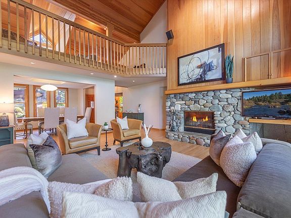 Set along one of Northstar's most coveted streets, 355 Skidder Trail embodies the essence of a true mountain retreat--where elegant design, generous space, and breathtaking views come together to create an extraordinary living experience. Thoughtfully crafted to welcome both intimate family moments and larger gatherings, the home offers an ideal balance of warmth, privacy, and connection. At its heart, the great room soars with vaulted ceilings and expansive windows, drawing in natural light and framing sweeping vistas of the Carson Range. Just beyond, sliding glass doors invite you to the broad outdoor deck, a serene perch overlooking Northstar's golf course and the ever-changing mountain landscape. The open kitchen, anchored by a sunny breakfast nook and outfitted with brand-new KitchenAid appliances, flows seamlessly into the dining area, private office, and primary suite, while an attached two-car garage ensures effortless convenience and accessibility--all on the main level. The lower level is dedicated to recreation and relaxation, offering two bedrooms, a sauna, and a vibrant game room complete with pool table, wine display, wet bar, and direct access to a covered patio for year-round enjoyment. Upstairs, two additional bedrooms and a charming play loft provide yet more space for guests and family alike. Blending the timeless appeal of mountain living with thoughtful design and abundant amenities, 355 Skidder Trail is a rare opportunity to experience Northstar at its finest.