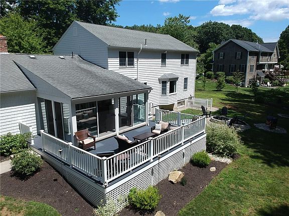 Traditional "Pratt Built" 4 bedroom center hall colonial. This home has been well maintained and updated with care. Home features hardwood floors, over-sized great room with brick fireplace, 3 season sun-room with new composite deck, lawn sitting area with fire pit, Quartz Silestone counter top with newer stainless appliances, 1st floor laundry area off the kitchen, large front to back formal living room, all 3 bathrooms have been updated, large 2nd floor main bedroom with a new 2019 stand up shower with custom glass enclosure, central air on the second floor, new high efficiency heating system in 2016, finished walkout rec room in the basement, underground electrical,sprinkler system, alarm system, over sized 2 car garage, new exterior paint in the last month. Just a short drive to downtown East Greenwich and waterfront. Minutes to route 95 and 15 mins to train line and TF Green international airport.