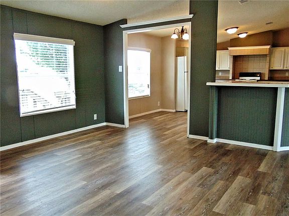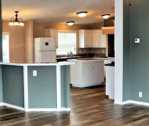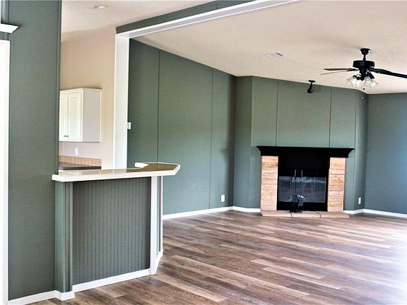 Large lot with remodeled home! This manufactured home has a large island kitchen, den with fireplace and large bathroom with shower AND garden tub with double sink areas, all making for a comfortable home. You'll find new light fixtures, paint, new carpet, and new plank vinyl flooring in common areas. Large storage shed for garden tools and mower are a plus. Front and back porch areas make this a great country home!