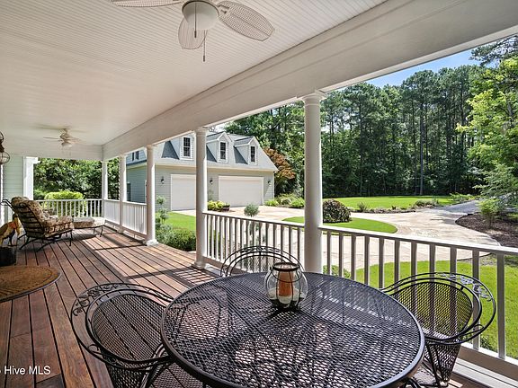 This pristine retreat occupies an exquisite 3+ acres on the Perquimans River in an incredibly private setting with 240' of waterfront. The interior is awash with stunning natural light and the floor plan is open and airy, with water views from nearly every room in the house. Family and friends will delight in gathering in the great room and spacious kitchen - and tucking in to the den or game room for more intimate conversation. Highlights include a stunning wall of windows, lovely hardwood floors, a tucked away home office, and geothermal HVAC. The first-floor primary suite boasts gorgeous water views and the large bath (with separate sides joined by a large walk-in shower) and closet were thoughtfully planned. Upstairs, 2 bedrooms share a full bath and the open balcony area provides another spot to slip away. The immaculate grounds will be enjoyed from both the gracious front porch and the rear deck overlooking the river, and while there is comfort in knowing neighbors are there, you won't see them. A pier and boat dock with a conversation area are in place, and an oversized 2 car garage with a workshop area is detached. There is space above the garage that could be easily finished into a guest suite for additional living space. Suttons Landing is a beautiful established community conveniently located between Edenton and Elizabeth City boasting spectacular sunsets over the Perquimans River. Come home to your own private paradise!
