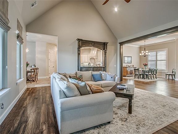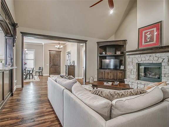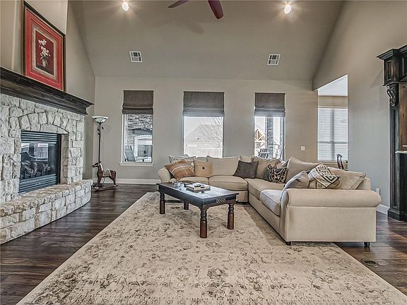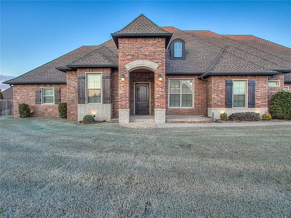 Incredible one story home situated on a 0.84 acre corner lot in Sunset Ridge Estates! Offering over 3400 SF to include 3 generous bedrooms each with a private bath, study with tons of built ins, formal dining room, bonus/media room could be optional bedroom, mud room, powder bath, and a 4 car garage! Immaculate one owner home, features wood floors, custom built ins throughout, cathedral ceiling in living room, geo thermal heat and air, storm shelter, sprinkler system, and a beautiful stone fireplace. The chef's kitchen is oversized with a large center island, gas range, beautiful custom cabinetry, granite counters, large casual dining space with built in hutch, and a large pantry. The master suite features a built in bench and huge en suite with amazing walk in closet. The backyard has a covered patio with fireplace, and a fenced dog run. 4 car rear and side entry garage, with plenty of parking! This home has the wow factor, don't miss it!