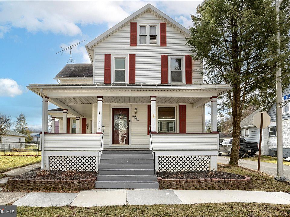 This early 1900s traditional home is a perfect blend of historic charm and modern functionality. With its inviting porch, hardwood floors, and thoughtful amenities, it creates a welcoming haven for family and guests alike. Gorgeous hardwood floors throughout as well the abundance of natural light add a touch of warmth and character to the living spaces. The open concept living/dining room is perfect for entertaining and family gatherings. And the kitchen, which is everyone's favorite gathering place, opens to the rear deck and double lot with a fenced-in yard (great for pets and kids). 3 spacious bedrooms and full bath round out the second floor. Convenient off street parking and oversize two-car detached garage not only provides secure parking but also offers potential for additional storage or a workshop. The home's proximity to the rail trail is a boon for outdoor enthusiasts, providing opportunities for walking, jogging and cycling. The nearby community park and pool offers recreational options, enhancing the overall quality of life for residents. Make an appoinment today, just in time to be settled in by Spring!