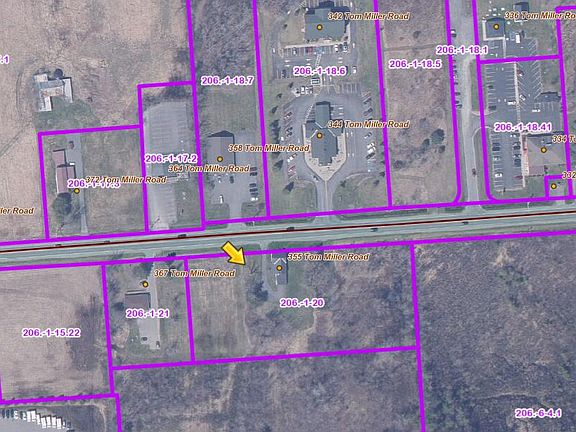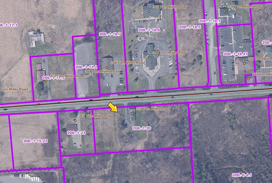 1,291 sq ft home has three bedrooms, one full bath. Appliances are presented as is. Property has municipal water, municipal sewer, and natural gas. 480 ft of road frontage and 2.3 acres on one of Plattsburgh's main routes, Tom Miller Road, makes this an ideal location for development, with 3 nearby restaurants, 2 non-profit offices, and a local credit union. Property is zones Town Center Neighborhood District (T3C) with a general design principal described by the Town as: