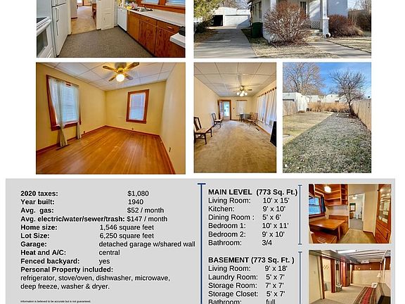 This home offers so much in its 1500 square feet: 2 bedrooms, 2 baths, plentiful storage, dining nook and built-in china hutch, all appliances, full basement, detached garage, private fenced backyard, and a covered patio great for entertaining. Past updates include roof, heat, a/c, fence, and more. What a great place to call home!