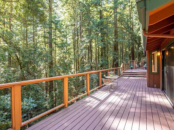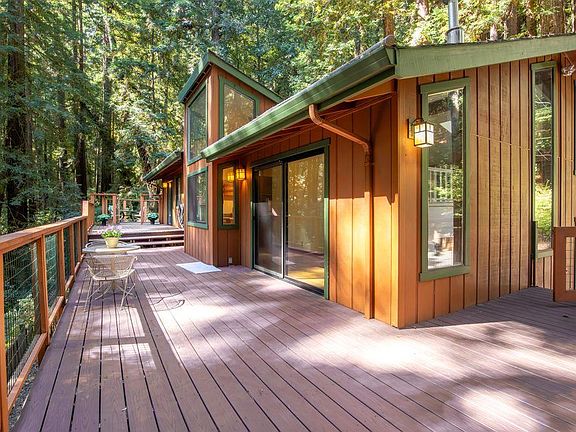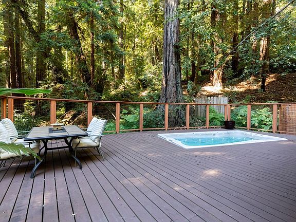 Wooded, Wonderland on Waldeberg Road! Private, peaceful and romantic creek side setting on 1+ acre parcel. Beautiful custom designed mission style home. Open floor plan with soaring ceilings, skylights and hardwood floors. Extensive decking expands the living space. AND the sparkling Jacuzzi lap pool is the ultimate place to relax. There is plenty of room to garden and hike the trails down to Marshall creek. You will love living here.