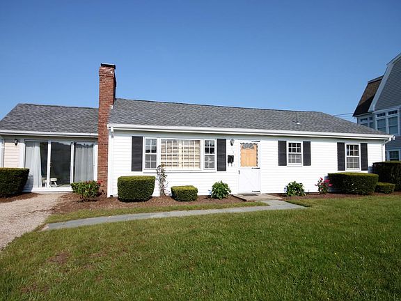 Falmouth Surf Drive Beach, this house is only 4 houses to the beach and approx 1/2 mile to town. Enjoy this turn key one floor lifestyle with expansive brick fireplaced living room, sliders to unheated sunroom, two full bathrooms plus a full laundry room. With gas heating (two systems) central A/C and a new roof, this is a well maintained home and is ready for a new owner. Please note, Lenders will require flood insurance.
