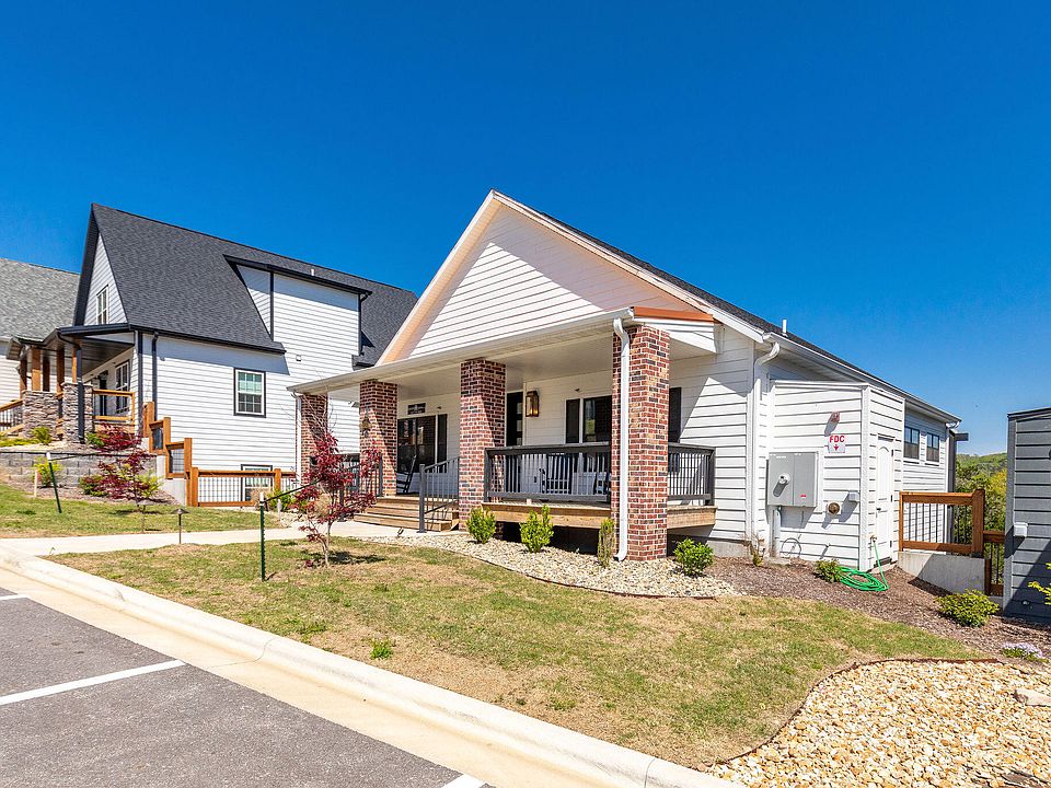 Welcome to Branson Cove! A Table Rock Lake Front community consisting of some of the highest end Nightly Rentals in the area. This Cabin is a rare find and one of only a select few that are lakefront and offer a gentle walk to the water's edge. On the inside, you'll find the true meaning of open concept. LVP flooring, vaulted ceiling with gorgeous shiplap, spacious kitchen, granite countertops, massive island, stainless steel appliances, a double sided brick fireplace for indoor and outdoor enjoyment and so much room for you and your guests. You'll also find 2 spacious suites with ensuite. The downstairs offers a large rec room, wet bar, theater room (or could be bedroom), 2 more private rooms, and a great bunk room for the kiddos. Enjoy your morning coffee on the screened in upper deck or evenings in the hot tub and around the fire pit with the breathtaking views of Table Rock Lake in the near distance. State Park Marina is located right next door! The community offers a lakefront park with a trail to the water's edge for swimming and kayaking as well as a new indoor pool & outdoor pool with waterpark slide. Make Branson Cove your family getaway for the best memories for years to come and let your guests bring in the income while you aren't using it! Don't miss out on this opportunity! Furniture included minus Artwork.