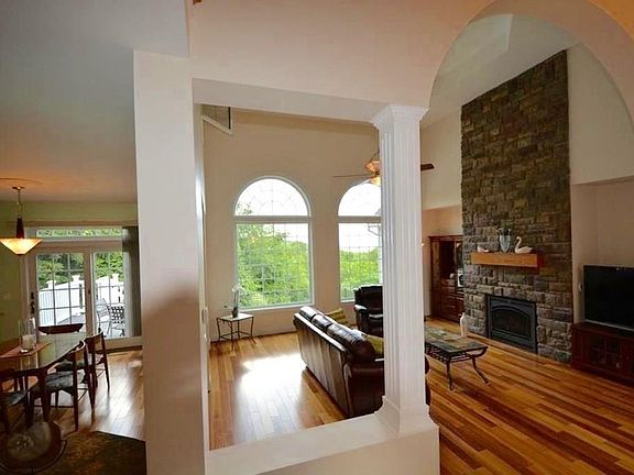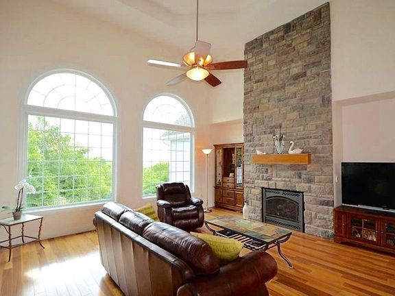 - Liv Dscrp: Fireplace, Flooring - Hardwood, Ceiling - Cathedral, Open Floor Plan, Ceiling Fan(s), Window(s) - Picture