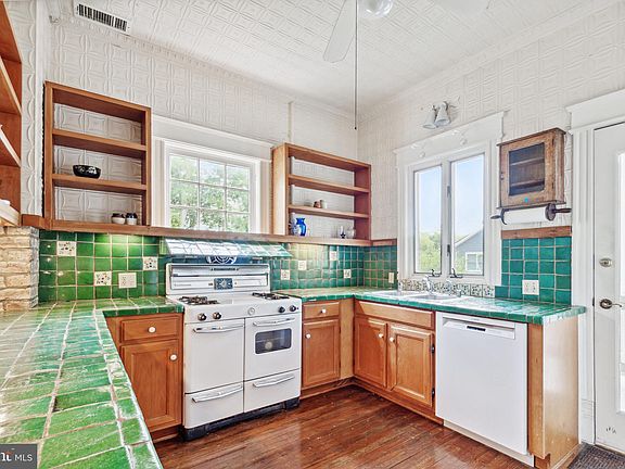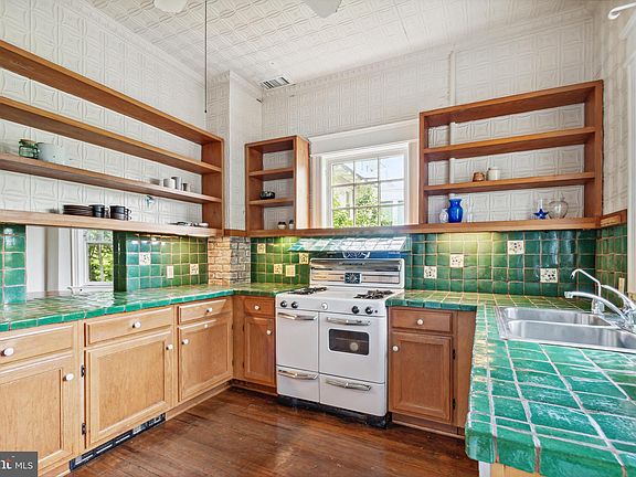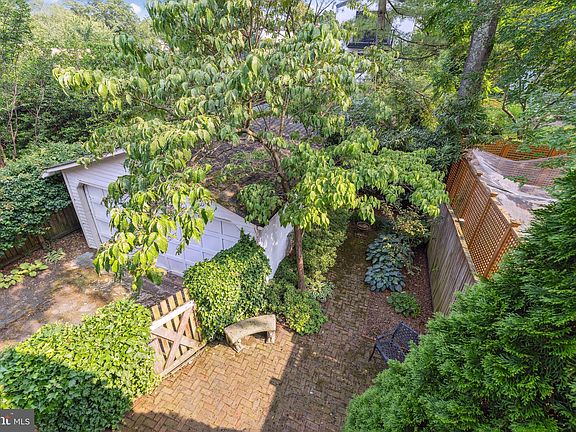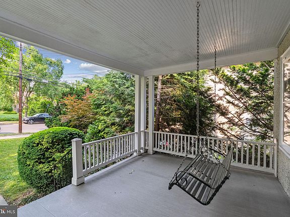 Lovely semi-detached home with 4 bedrooms and 2 full baths. Awesome front porch with swing, living room with fireplace, French doors to large dining room with bay window & coffered ceiling. Spacious kitchen with wood shelving and huge pantry. High ceilings & original detail throughout, including 11’ high ceiling on the bright lower level with separate entrance! Deep private brick backyard with deck, 2 car garage plus off-street parking. Great location close to restaurants, shopping, Metro & more!