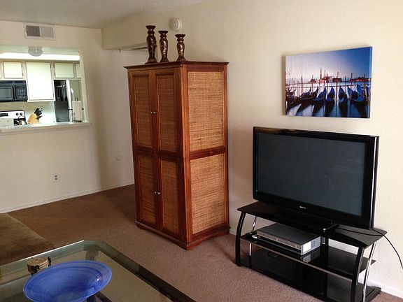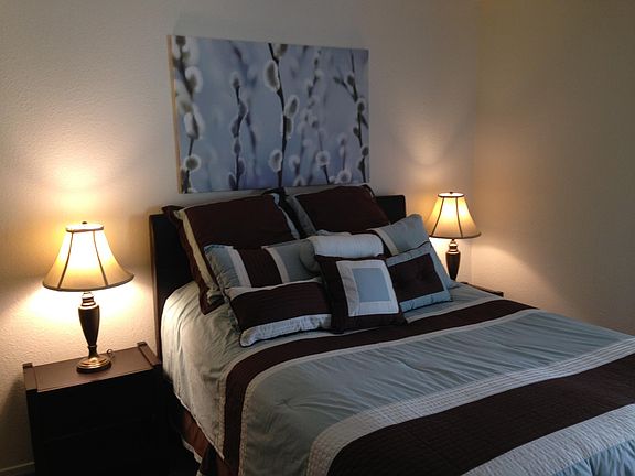 This beautifully furnished 2bd/2ba 1067sf unit has a queen bed in the master suite, and a queen bed in the second bedroom. Private patio. Both bedrooms and the living room have their own entrance to the patio. Just minutes away from the Casinos, the Colorado River, Davis Dam Park, Lake Mohave. The unit has a 42" HDTV flat screen television with a DVD player in the living room, a small flat screen television in the master bedroom. Washer/dryer, dishwasher, linens and bedding. A fully equipped kitchen including dishes, utensils, microwave, toaster, coffee maker, and more. All you need to move in is your personal items. The condo complex provides 2 pools, 2 spas, steam room, fitness center, tennis court, pickleball courts, 24/7 gated security. This unit is conveniently located on the bottom floor! No need to climb stairs at this 3 story condominium complex. The local bus stop is located across the street from the condo complex. Ride anywhere in Laughlin for just $2.00 for adults and $1.00 for seniors ! Only 15 minutes to the Laughlin strip by bus. Rent: $975 per month. 1 year lease and then coverts to month to month. Water, trash collection and sewage included in rent. Condo available now. Please call, text or email the owner if you have any questions or would like to see the condo and the condominium complex. Owner pays for water, trash, sewer Tenant pays for electric