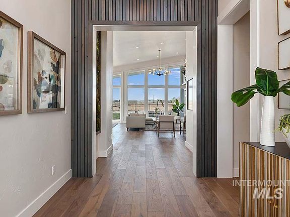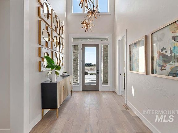 The Florence by Todd Campbell Custom Homes. Located in prestigious Boulder Point neighborhood in highly sought-after NE Boise, this home takes full advantage of the incredible foothill views from north & Barber Valley view from south front windows. Stunning wall of windows w/angled roof lines in great room make for an expansive open an airy great rm were light flows effortlessly throughout. You’ll love entertaining in the stately kitchen featuring Wolf appliances, oversized island with plenty of workspace, sprawling butler’s pantry w/bakers counter, custom white painted cabinets to add to the light & bright feel. Built-in entertainment cabinets flank the modern fireplace, ceiling beams add an element of warmth and architectural detail. Flexible layout w/spacious office, 2nd entertaining area or 4th bedroom w/ large windows looking out over common area and Barber Valley views. *photos similar & are not of actual home or selections.