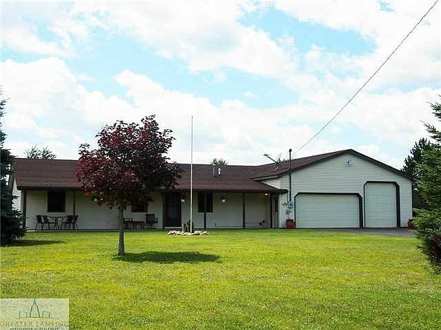 Peace and quiet is what you get in this ranch home. Sitting off the road on a long black top driveway this home features 2 bedroom, 2 full baths, a huge garage and lots of updates. All the living space is generous in size and is an open floor plan. U shaped kitchen with breakfast bar that seats up to 5. Sellers have recently upgraded the kitchen with quartz counters, stone/tile backsplash, tile floor, and new appliances including a stove with a double oven. All new flooring and paint throughout. The furnace is 1 year old, water heater is 3 years old, and pressure tank is 3 years old. One of the full baths is a Jack and Jill bath between the 2 bedrooms and has tile floor, new sink, shower and stool. The 2nd full bath has a new stool, shower door, flooring and vanity. Most of the interior doors are solid oak. The dining area is large enough for a big table and a buffet or cabinet with plenty of room around. Off the dining is the new sliding door to a large patio. Although this home does not have a basement, this house features a flex room off the back of the garage that could be used family room, hobby room or workshop. It has its own furnace and entry from the patio or from the garage. It has lots of storage cabinets, counter tops, a window, overhead garage door and some insulation in the ceiling. The garage is 30.8 x 36.7. It has 2 overhead doors with one new door opener. It also has a walk in closet with hanging space and shelving. Enjoy your quite setting from the covered front porch.