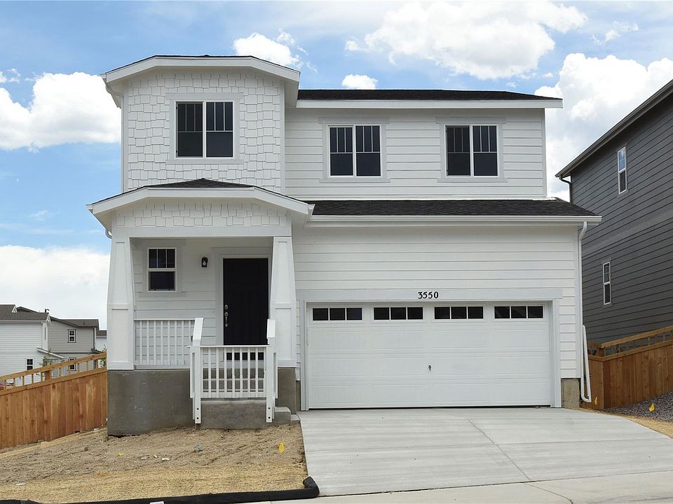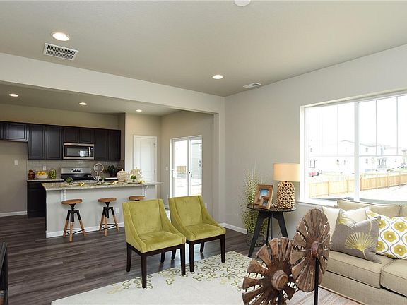 Brand new home ready for quick move in, located in the highly sought after Meadows community on a corner lot. Dark cabinets, stainless appliances, and granite countertops throughout. Hardwood laminate floors on the main level, tile floors in the hall and master bathroom. Lovely designer selected finishes. Walking distance to breakfast, lunch, dinner, movies, drinks, trails, parks, etc. 5 minutes from Interstate 25. You can't beat this location!