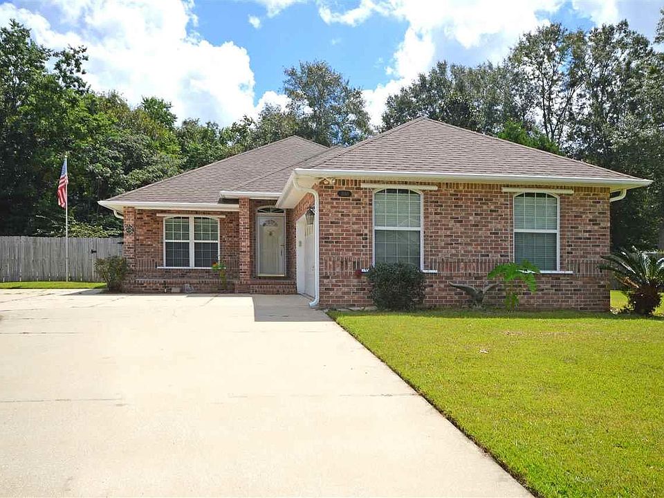 CUL DE SAC LOCATION ~ PRIVATE LOT ~ PACE SCHOOLS ~ Welcoming cul de sac location and great curb appeal makes this one you won't want to miss! Updated with higher end laminate wood floors 1.5 years ago. Foyer with coat closet opens to flex room on your left and family room / kitchen / dining straight ahead. Family room has floor outlets, recessed lighting, beautiful brick hearth around fireplace. Kitchen was updated 1.5 years ago as well and doesn't disappoint! Newer features include updated cabinetry, glass tile backsplash, recessed lighting, bar area for seating, eat-in kitchen, pantry, plus all kitchen appliances convey with the home. Master bedroom has extra linen closet in the hallway and also has a trey ceiling. Master bathroom is nicely appointed with jetted tub, double vanity, medicine cabinets, water closet, and walk in closet with pocket door. The 2 additional bedrooms - both with laminate wood floors - share a hall bath with single vanity, updated lighting fixtures and tub/shower combo. Other amenities include: beautiful SUN ROOM off of dining area that leads to open patio and fenced yard, INSIDE LAUNDRY, HVAC new 1 year ago, SHED in backyard, and 2 car garage with pull down stairs to the attic and extra shelving as well. Great price for a great home! See this one quick because it won't last long... Call TODAY for your showing.