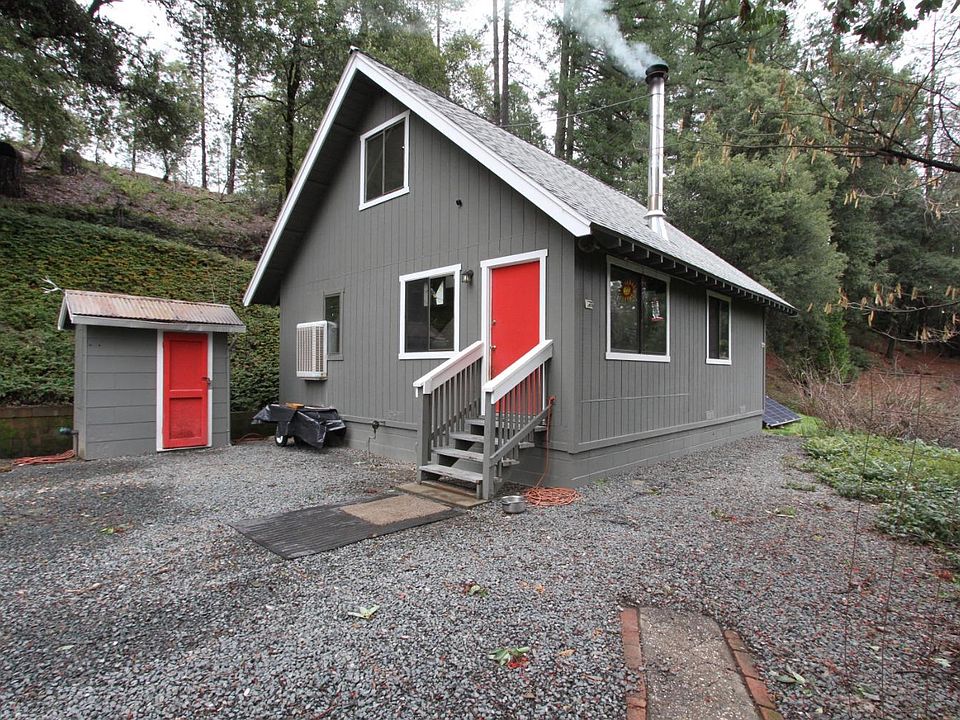 Escape to tranquility in this Iowa Hill Community gem - a Cozy Cabin, only 4.5 miles from Sugar Pine Lake. Set on 2.69 private lush acres, surrounded by BLM land, this retreat seamlessly blends mountain charm with modern comforts. The main level, connects you to nature through several windows. Create a second bedroom or get-a-way in the loft. Embrace eco-friendly living with seller owned solar panels and warmth from the wood stove on cool evenings. A garage and out buildings offer convenient storage. Explore Sugar Pine Recreation area's fishing, kayaking, hiking and HOV bike trails. Some even bike the loop from Auburn to Colfax through Foresthill and Iowa Hill. Witness the brilliance of the night sky and wake to the sounds of nature. This cabin beckons you to unwind, escape, and create cherished memories in nature. (Iowa Hill is a small, unique, historic community between Colfax and Foresthill.) It is off-grid and rich in gold mining history. Sale is AS-IS and contingent on concurrent closing for replacement home. Roof 3 years old. Ask agent for off-grid lender referral.