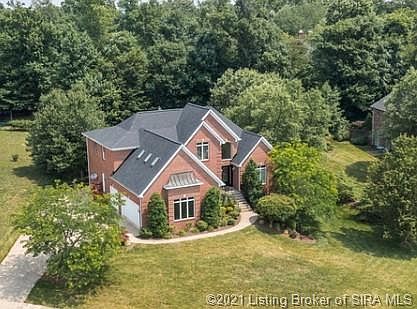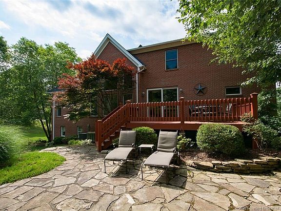 One of the most private back yards in premier Woods of Lafayette. A Club House for gathering or private parties,pool,lake,paved paths around the lake is a bonus in picturesque Floyds Knobs. Rare find with over 5000 SF, new roof shingle, stone patio, tiered stone fountain and serene yard. Nature galore! Professionally landscaped with pines and ornamental trees. 6 Bds 4 1/2 Baths. There are 2 suites: A main (master) and LL. An in-law/adult/college student would love LL Bdrm & Bath w/private exterior access to a large private patio. Spectacular floor plan for Multi-generational needs. Laundry & Mud rm accesses exterior. A Kitchen w/Island opens to 2 story Great Rm. Pantry closet plus a Broom/vacuum/cleaning supply closet is just off laundry. Great Rm & Breakfast view towering trees. The 1st Flr Main Bdrm is 17 ft long. Main Suite w/bath & Massive Walk-in closet area boasts 663 SF,alone! The LL Walk-out has a wet bar, billiard room or second family room w/gas fireplace, and a huge 3rd family room large enough for two or three big screen wall tvs. LL Library office/gym/music/room w/floor to ceiling white blt-ins. Pre-planned area for future pool at right rear of patio. LL land has room for a separate drive on right side of property. The 2nd Flr boasts 4 Bdrms w/walk-in. Wainscoting, granite, tile, extra lighting, jetted tubs,2 HVAC & 2 Wtr Heaters. Current owner installed $20,000 in patios,deck,landscape,alone. Monthly: Gas$33,Electric$208,Water$70,Sewer$65.