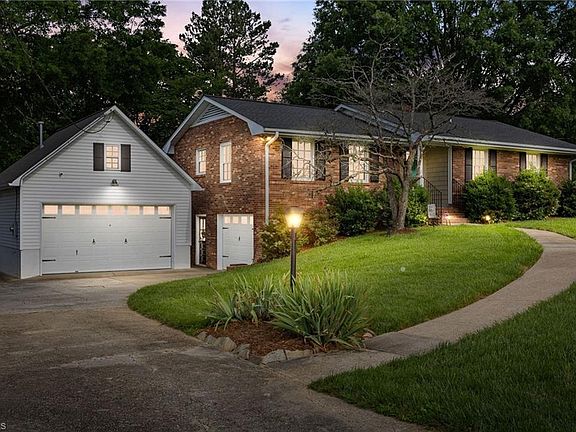Nestled in the serene community of Pfafftown, this brick ranch offers modern living with a touch of traditional charm. Step inside to discover a spacious kitchen and hardwood floors. Three bedrooms and two bathrooms, including a master suite for added privacy, provide ample accommodation and space. Finished basement offers additional living space, perfect for home office, media room, or recreation area. Venture outdoors to experience a private oasis, complete with fenced yard. Gather around the fire pit or luxuriate in the soothing waters of the hot tub, creating cherished memories. Car enthusiasts and hobbyists will appreciate the convenience of both a detached garage/workshop and an attached one-car garage, providing ample storage for vehicles and equipment. Neighborhood conveniently located with easy access to schools, shopping, and dining - the perfect blend of suburban tranquility and urban convenience. Schedule a showing today and experience the lifestyle you've been dreaming of!