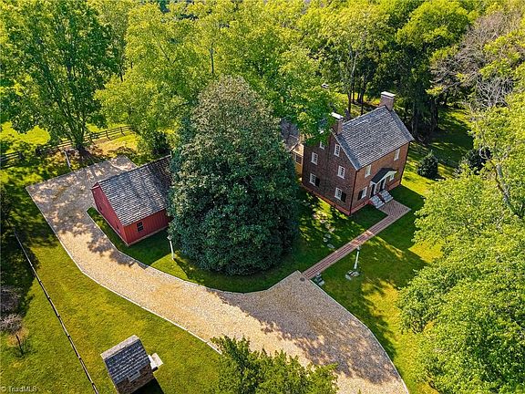Beautifully restored and impeccably maintained Forsyth County treasure on 8+ peaceful acres in Clemmons, just minutes from I-40 and Winston-Salem. Built in 1798 by Philip Hoehns (Hanes), the first Hanes descendant in NC, and wife Johanna, this 5-bedroom 4-bath National Register home was meticulously renovated in 2015 with a cedar shingle roof, copper gutters, new baths and new HVAC systems. Also in 2015 a historically sensitive addition included a stunning great room with beamed ceiling and wood burning fireplace, a fully equipped chef's kitchen and a lovely covered porch with fireplace. The second level includes a primary suite with handsome bath and sitting room, plus a second bedroom with its own bath. Outbuildings include a two-car detached garage (2015) with expansion potential, and the original, restored springhouse. Qualifies for Forsyth County 50% Historic Property Tax Credit. A rare opportunity to own an extraordinary, historic estate with a gracious, eminently livable home!