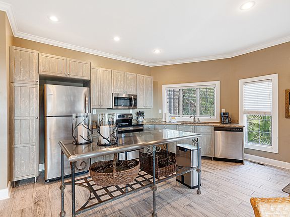 Located in the revitalized West Beach Village, this oceanfront villa has direct beach access and immediate proximity to The Sandcastle homeowner's clubhouse and pools, Cougar Point Golf course and clubhouse, and much more just steps away. This seaside retreat has been completely renovated from top to bottom by the family who has owned and cared for it since it was built. This villa was redesigned for convenience and efficiency with an open floor plan that flows easily between dining and living spaces. The interior boasts a comfortable European sensibility and durable furnishings selected to withstand the test of time, family vacations, and rental guests. The living room offers direct access to the covered deck and coveted ocean vistas. A wall of sliding glass doors adds depth and natural light to the space. Whether for dining or relaxing, the wide deck is a rare and superb addition to the villa's ambiance. The functional kitchen is open to the living and dining rooms and features granite countertops, a floating stainless island, and direct access to the screened porch for outdoor dining and effortless entertaining. The master bedroom has ocean views, a bath with dual vanities, a walk-in shower, and a walk-in closet. Two spacious guest rooms feature newly renovated baths - one with a walk-in shower and one with a tub-shower combo. This villa is offered fully furnished with custom and one-of-a-kind pieces, antiques, original art, and colors that reflect Kiawah's natural beauty. An enviable location, extensive renovations, and direct beach access make this an ideal rental property and delightful vacation destination.