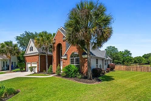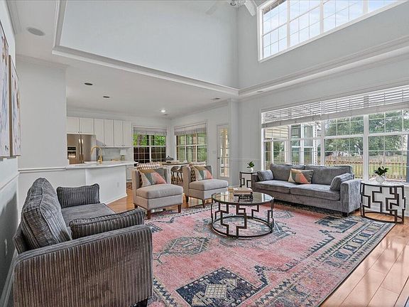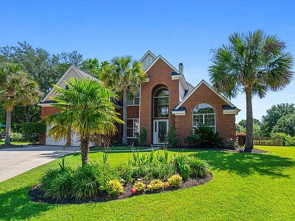 West Ashley's prime community Village Green located on a quarter acre homesite on the cul-de-sac backing up to a gorgeous pond! This brick front home has 18' ceilings, a downstairs primary suite with deluxe owner's bathroom including a separate tub and shower, double sinks, water closet and walk-in closet plus the enormous room offers architectural details in the tray ceiling and also provides a service door leading to the serene backyard. The home is appointed with a total of 5 bedrooms, an office/living room with vaulted ceilings, separate dining room with trim detail, butler's pantry, kitchen including quartz countertops, a walk-in pantry and a built-in desk, breakfast area, enormous laundry room, plus a finished sunroom abundant with natural light and a fully fenced yard with patioand gazebo overlooking the gorgeous pond! The yard is adorned with many fruit bearing trees including the most delicious persimmons you've ever tasted! The two-story family room is quite dramatic with a beautiful fireplace flanked by built-in bookshelves as the focal point! Up the cascading staircase, you'll find four additional bedrooms all with ample storage and closets. The room over the garage was converted to a bedroom and includes multiple storage closets giving easy access to those items while they're out of the way! The carpet is brand new and most of the home has been freshly painted! There's a central vacuum system (as-is) and a completely rebuilt industrial sized water heater. There is a covered outdoor cooking area as well! Village Green has lovely amenities including a pool, but that membership is optional! 3550 Springmire Court has been the recipient of "Yard of the Month" numerous times, and the holiday lights display is one that is a community treasure!