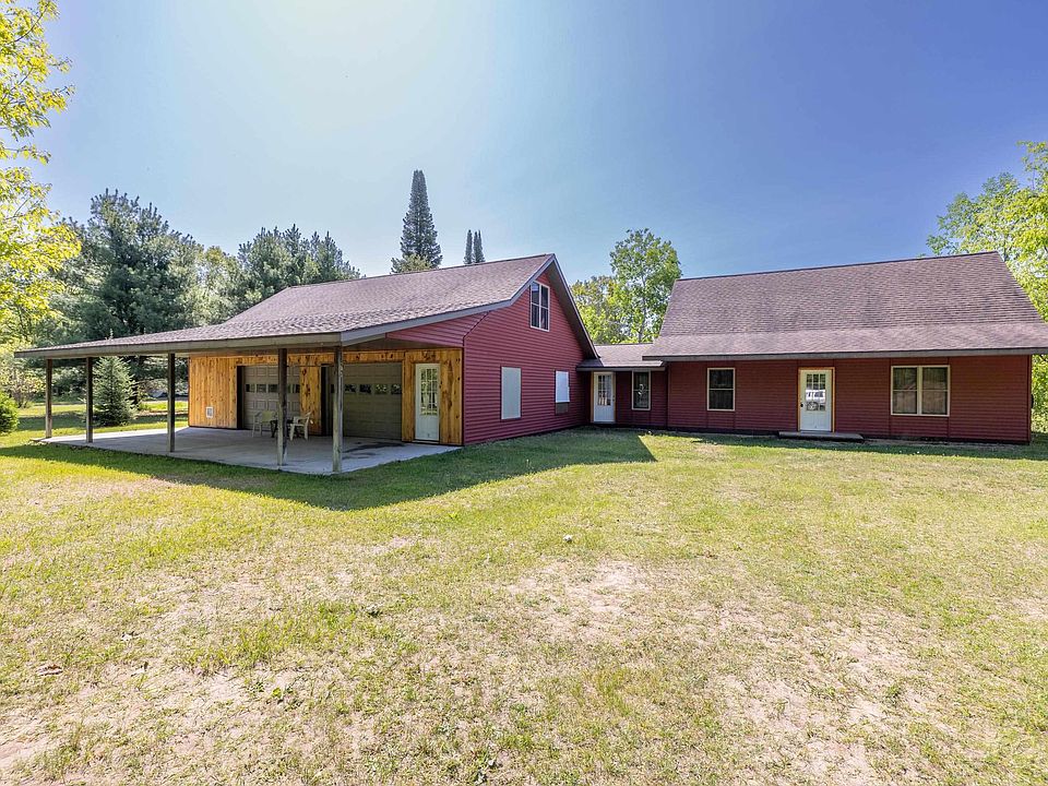 Beautiful Cape Cod style home with nice private drive, 192' of Muskegon River frontage, and over 7 acres of land! New vinyl plank flooring throughout. Electric baseboard heat. One bedroom and one full bath with upstairs area that can be used as more sleeping space or even a game room! 2x6 construction and well insulated. Very large 38' x 28' garage has a stairway leading to a loft area and covered patio spot in front. Home has Andersen windows throughout, water from an artesian well, covered patio overlooking the Muskegon river, and fire pit. Only a 10 minute drive to town, don't miss out!