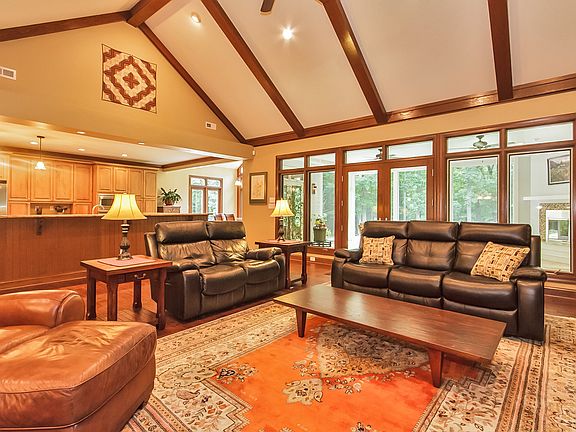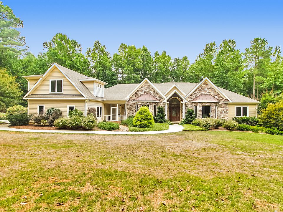 Magnificent stacked-stone fireplace creates inviting focal point for this beautifully maintained custom home gracefully sited on 14+ acres in Orange Co. Wide hallways, large no-threshold shower, 'split-bedroom plan' make this a perfect multi-generational home, if desired. Natural light streams in from copious windows giving views of serene & meticulous grounds! Home office/BD#4...conveniently located upstairs only a few steps from the master. 10 min to downtown Hillsborough, 23 min to Duke, 25 min to UNC!