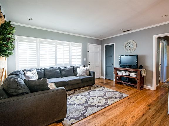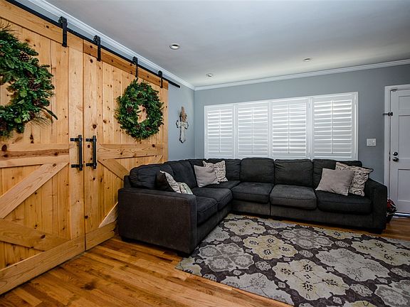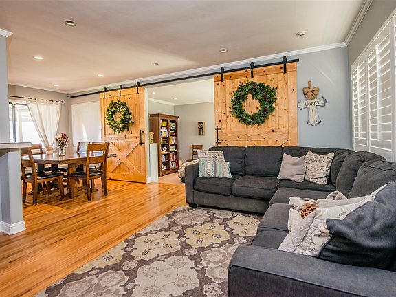 On the sunny side of a quiet street, this La Mesa abode has fantastic curb appeal and boasts turn key features at a smart price. Inside offers recess lighting, crown molding and hardwood flooring throughout. The bedrooms come equipped with dual pane windows and ceiling fans. A bonus room is enclosed by beautiful custom sliding barn doors. The full bathroom is remodeled with modern features. The classic kitchen looks out to the fenced backyard with covered patio surrounded by thoughtful landscaping.