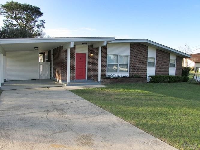 CAN YOU SAY LIKE ALL BRAND-NEW?!?!?? Your buyer will say it is just like a new home!!! From the 50's flair of the exterior and the beautiful maintained lawn, large open carport, perfect sized front porch, and the WELCOMING RED FRONT DOOR... prepare to write an offer on this beauty! All of this just done in 6 months: 2.5 Payne HVAC system unit in the main house and a 1.5 mini split pump in the back room...new paint throughout. New ceiling fans in all rooms. New toilets, vanities, light fixtures...copper wire w updated breaker box. There is so much space for an entire family in this great room with sunlight flooding through the beautiful picture window, tile floors, coat closet..too much to list! The large kitchen is to the left also with a space for a dining room table in the wide open great room. Breakfast bar seats 3-4...Real wood cabinets with crown molding, great sized pantry for storage, storage underneath the breakfast bar... new dishwasher-never used. New faucets and sink. The large space off the great room can be used for a master bedroom, pool room, kids playroom & there are 2 super large closets, along a french door out to the back yard and there is a privacy fence for safety for kids and pets! Sellers have made the bathrooms immaculate and fresh with white tile- new everything! + a glazed tub, that is shiny white...(you will love these baths!) Master bedroom has a good sized closet, and bath with all the same updating as the hall bath...one of the bedrooms has built in shelves perfect for an office or kids room to store all their books and toys. Wood laminate on all the bedrooms, tile in front & great room, super great flooring for allergies! One of the large storage sheds will stay and the other shed will stay with a satisfactory offer! So much new-ness you will be overwhelmed when you walk through the doors of your new home! Sunny and light, with a super outdoor area for the family, large sized rooms make this special home something extra!!