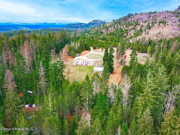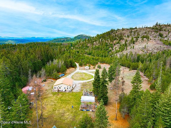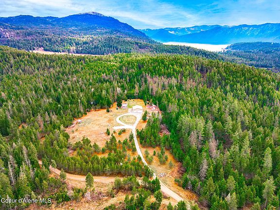 Multi-generational opportunity on this private hilltop 20 acres. 1 bdrm, 1 bth 16' x 48' shop home with full unfinished basement for storage under home area. Connects to 32'x48' shop/garage section with concrete floor & 2 roll-up doors with electric door openers. Full RV hook up connected to an ADDITIONAL drainfield which allows for a separate additional 4-bedroom home. Entry has a code-activated gate with a 'Mighty Mule' gate opener which can be opened from the home & is multi-coded. A 'Dakota' driveway alarm adds to security. Top 5-7 acres could be pasture for animals. Has 2 fenced garden areas & a greenhouse, & large, fenced orchard area. Property slopes to the east into forested riding & walking trails. Has a 12'x24' woodshed & 16'x19' storage building. Solar panels with 2 lithium-ion batteries provides additional electricity which feeds back into the Kootenai Electric grid in summer. Also, a back-up generator is included. Stimson Lumber Co owns adjoining timber ground to the west & was logged 7 years ago. The Property is located midway between CDA & Sandpoint, minutes to Farragut State Park, & Bayview on the south end of Lake Pend Oreille for unlimited outdoor recreation. Or just sit on the deck & relax in the peace & quiet of your very special North Idaho retreat homestead. Come, let us show you this special magic setting.