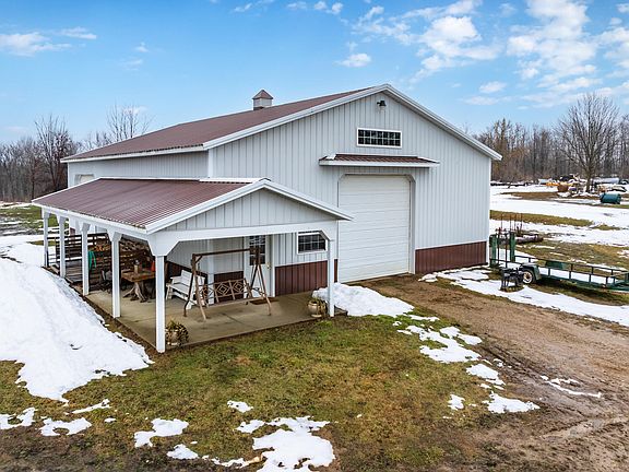 Nearly 8-acre retreat on Sweet Lake offering the perfect blend of serenity and recreation. This property features a 53*42 pole barn and a horse barn with a pasture, making it an ideal haven for equestrian enthusiasts. Enjoy 75 feet of private frontage. The sunroom offers a cozy spot to unwind and enjoy the views of the pasture, while the deck provides the perfect setting for outdoor gatherings and entertaining. The stone fireplace adds a touch of warmth and character. Noteworthy is the potential for a versatile living arrangement, as the property can easily be transformed into a Mother-in-law suite. This unique feature adds flexibility to accommodate various living arrangements and lifestyles. Discover the beauty of lakeside living coupled with the convenience of multiple structures and