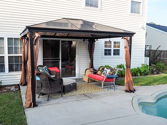This truly spectacular home with amazing curb appeal and entertaining space features a pond in the front yard, iron gated entrance to the front porch, and full privacy fence enclosing the back yard oasis with in-ground mineral pool, covered patio, and gazebo. The main floor of this popular Hanover Plan features 9' ceilings, an open floor plan with family room, kitchen with oversized island bar, and dining space with plenty of natural light throughout. The kitchen is well appointed with 42" cabinets, tile backsplash, and stainless appliances. Upstairs holds 3 bedrooms, 2 full bathrooms, and laundry room with extra storage room. The master bath features a garden tub, separate shower, dual vanities, and walk in closet. Both guest rooms also feature large walk in closets. Other features of the home include an alarm system, underground sprinkler system, French drains, custom landscaping, gutters, a storage building, and extra storage in the attached 2 car garage. ~$2,500 credit available toward buyer's closing costs and pre-paids with acceptable offer and use of preferred lender. ~