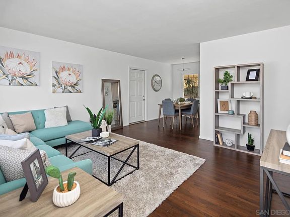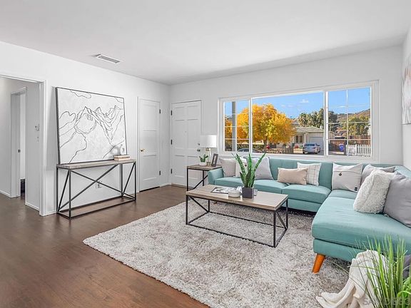 Single level La Mesa Charmer in the Community of Brookside! This move-in ready 3 bedroom, 2 bath home offers an updated kitchen & baths, fresh paint throughout & refinished hardwood flooring. Light & bright, this home has a sunny kitchen complete with plenty of cabinetry, recessed lighting, quartz counters & gas cooking & leads to the low maintenance backyard complete with a large covered patio that extends your living space outdoors. Dual pane windows, AC, 1 car garage with direct access & laundry. Great location with easy access to freeways, the Trolley & schools. Enjoy all that Downtown La Mesa has to offer including restaurants, shopping & special events!
