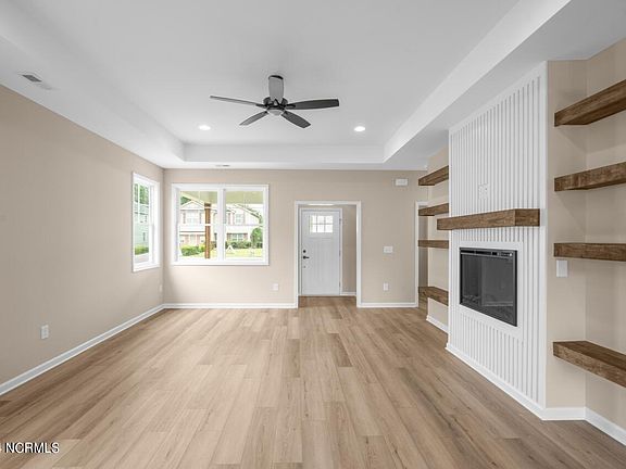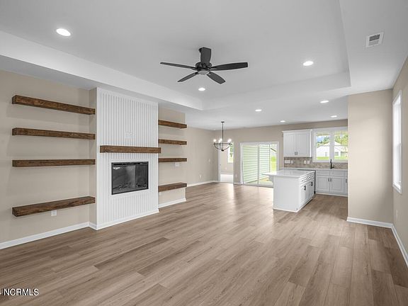 New construction convenient to all major highways, shopping, and entertainment. Upgraded LVP flooring throughout living areas. Great Room with electric fireplace and built-in shelving, flows into bright Kitchen with quartz counters, center island, stainless appliances, and walk-in pantry. Step from Kitchen to covered back patio. Master Suite with walk-in closet, dual vanities, custom-tiled shower, and separate water closet. 2 Guest Rooms share Full Bath in Hall.
