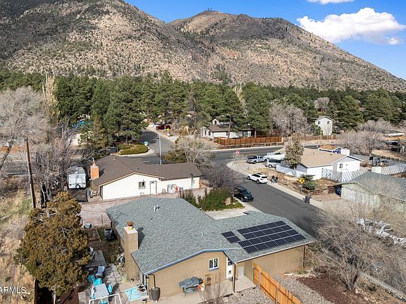 Beautifully remodeled home in a NO HOA neighborhood with breathtaking Mt. Elden views! This 3-bedroom, 2-bath gem features newer luxury vinyl floors, a cozy upgraded wood-burning fireplace, brand new A/C, a whole-house fan, and leased SOLAR. Fully upgraded remodeled kitchen with gourmet pantry. Spacious primary suite with remodeled primary on-suite bathroom with his and her closets. The fully landscaped backyard with artificial turf offers the perfect setting for summer enjoyment. A 2-car garage and a prime location near Mt. Elden's hiking and biking trails, as well as downtown Flagstaff, make this home a rare find. With a 6-year-old roof and furnace, this home is truly move-in ready. Sellers offering buyers a credit for driveway replacement.(ask agent for details).