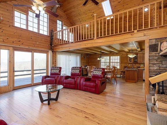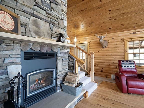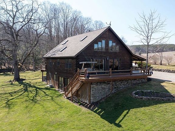 Welcome to your new private oasis! Amazing log home nestled on almost 34 acres with an abundance of wildlife & maple trees. This home is an entertainers dream with soaring ceilings, elegant hickory hardwood floors & a seamless flow between the great room, dining room & kitchen. The great room features a beautiful stone wood burning F/P that spans from the floor to the ceiling. Kitchen offers granite countertops, S/S appliances & handcrafted cabinets. 1 bedrm is conveniently located on the 1st floor with a full bath close by. Off of the attached 2 car garage is the sun porch that displays scenic views of the back yard. Upstairs you will find the 2nd bedrm with a half bath & a loft area that could be used as an office, more sleeping area or seating for entertaining. Walking down to the lowest level there is the huge master suite that features a F/P, a spa-like bath with a whirlpool tub & a standup shower, and French doors that open up to the beautiful side lawn. Relax outside on the wrap around porch, explore the woods or tinker in the barn that is suitable for livestock with electric & water. Don't wait, this won't last long! Delayed Negotiations are Saturday April 6th @ 5pm.
